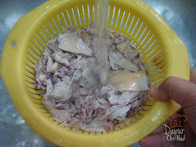 Sotong kering yang telah direndam selama 1 jam,ditoskan ...
